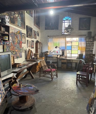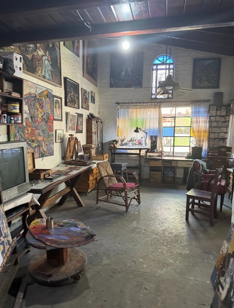 L’atelier de Claudio Scheffer est un espace où se rencontrent structure et improvisation - un environnement dynamique où le processus compte autant que le résultat. Il fonctionne non seulement comme un lieu de travail, mais aussi comme un véritable laboratoire d’expérimentation, où la peinture, le collage et l’assemblage coexistent dans un dialogue constant.